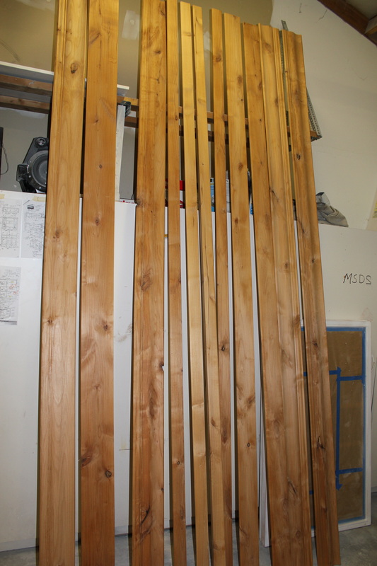 Our second shop project today is for a garage remodel. These alder planks are being sanded, benited and stained with a custom color from Daly's created by Mark Seley. This job will be done in two days for the customer off-site so the customer can install finished wood to their garage.